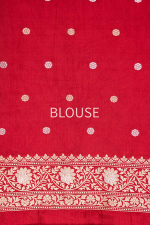 The saree includes an unstitched blouse piece. The model's blouse is for styling only; please refer to the blouse piece image for the actual design.