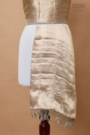 A soft & flowy light grey Banarasi tissue silk dupatta woven in stripe pattern.