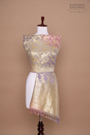 A captivating multicolor Banarasi georgette dupatta, awash in soft pastel tones that melt seamlessly into one another. Adorned with intricate zari jaal scattered across the fabric, it offers a delicate balance of vibrance and elegance. The sheer georgette drapes effortlessly, while the interplay of color and craftsmanship brings a refreshing charm perfect for elevating both festive and contemporary looks with a whisper of timeless beauty.