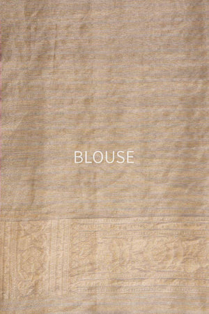 Step into a world of luminous splendor with this beige Banarasi silk tissue saree—a resplendent tapestry where tradition and delicacy entwine in perfect harmony. Woven from the finest silk tissue, its feather-light drape shimmers with a diaphanous glow, evoking an air of quiet opulence and ethereal beauty.