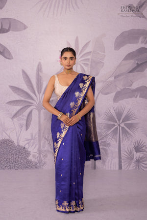 Color: Navy Blue, Gold Zari