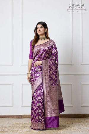 The saree includes an unstitched blouse piece. The model's blouse is for styling only; please refer to the blouse piece image for the actual design.