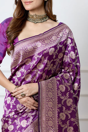 A vibrant celebration of grace and sophistication, this magenta pink katan silk saree is designed for those with a discerning taste for luxury. Featuring a rich, textured surface and enhanced with intricate handwoven motifs, the saree offers a bold yet elegant aesthetic. The rich magenta hue, paired with subtle gold accents, creates a striking contrast that speaks of timeless beauty and opulence. Expertly crafted by skilled artisans, this saree is more than just attire—it is a statement of elegance, destined to be treasured and passed down through generations.