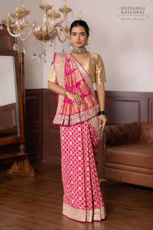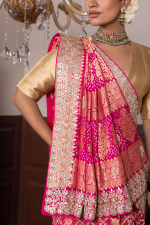 Technique: Banarasi weave with Bandhani, adorned with intricate hand embroidery