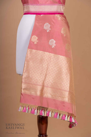 Elegant pink dual tone silk dupatta with silver and gold zari butas.