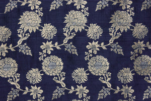 Navy Blue Handwoven Banarasi Raw Silk Fabric