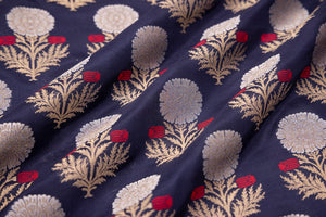 Color: Navy Blue, Gold & Silver Zari