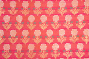 Pink Orange Handwoven Banarasi Silk Fabric