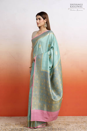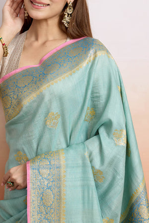 Blue Handwoven Banarasi Tussar Georgette Saree