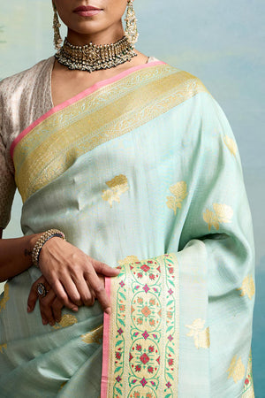 Powder Blue Handwoven Banarasi Tussar Georgette Saree
