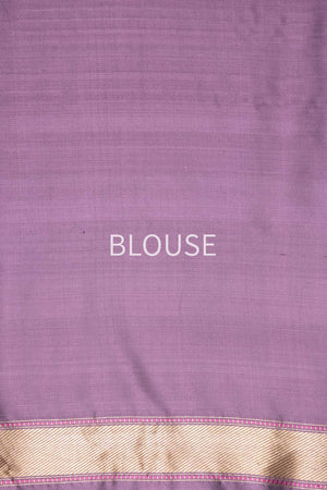 Intricate floral butas bloom across the luminous body, touched with subtle meenakari accents and woven in radiant gold zari using the timeless kadhua technique. A graceful lavender contrast border frames the serene blue, adding a refreshing whisper of color and depth.