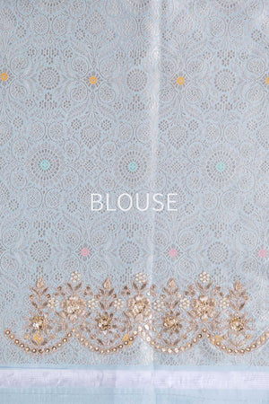Length: 528 cm / 208 inches, Width: 109 cm / 43 inches Unstitched Blouse: 101 cm / 40 inches