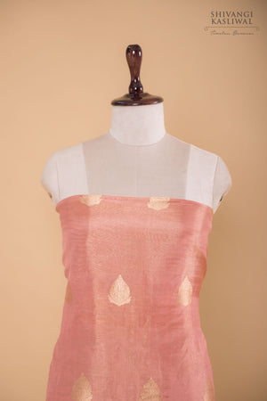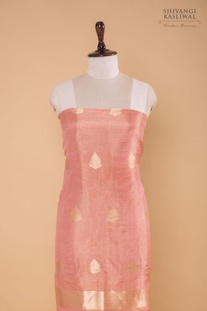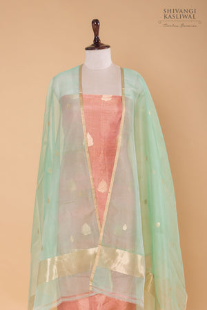 Handwoven suit piece in tissue silk woven in buta kurta accompanied with a contrasting buti dupatta.