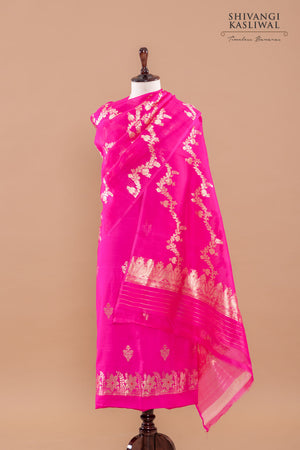 Rani Pink Handwoven Banarasi Silk Suit Piece