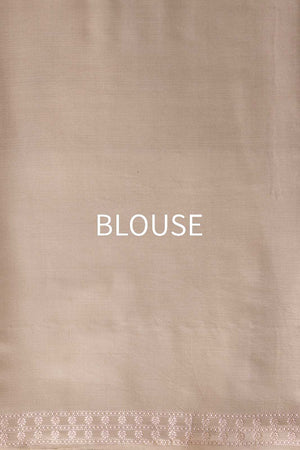 Bathed in the mellow glow of champagne gold, this satin silk saree emanates an aura of rarefied luxury. Its silken expanse, fluid and lustrous, is adorned with finely spaced floral butis woven in molten gold zari—each motif glimmering with a quiet, aristocratic brilliance. The katan’s radiant surface amplifies the richness of the weave, creating a drape that feels indulgent yet impeccably poised.