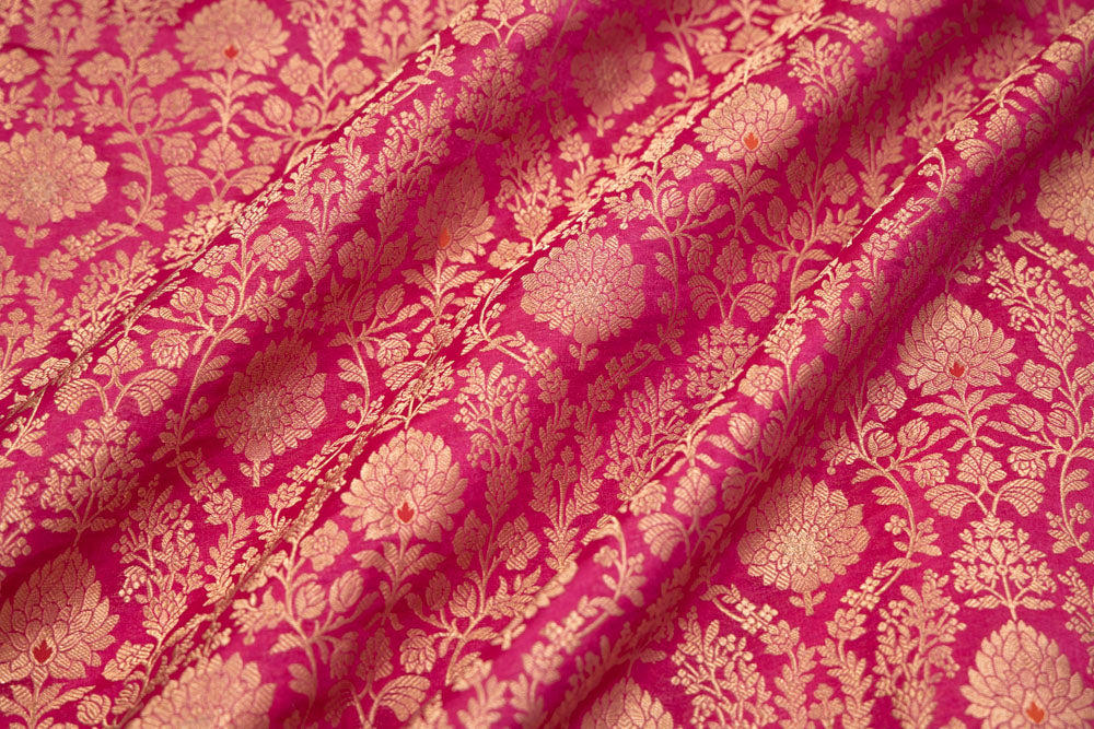 Fuchsia Pink Handwoven Banarasi Brocade Fabric