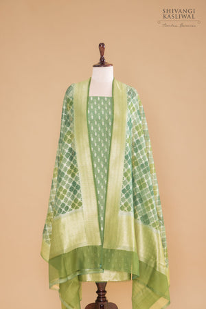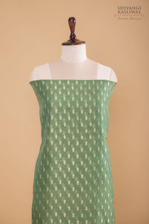 Handwoven suit piece in chanderi woven in buti kurta accompanied with a shaded chaukdi dupatta.