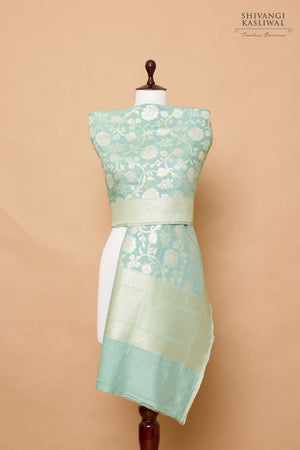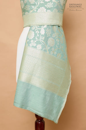 Mint blue Banarasi moonga silk dupatta woven in sona-rupa jaal pattern.