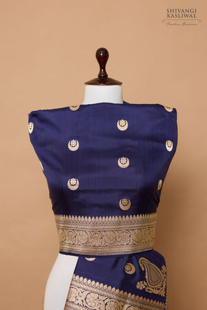 Navy Blue Banarasi silk dupatta with allover chand buti.