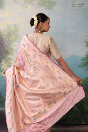 The soft cascade of pastel hues in the signature rangkat pattern creates a celestial canvas—elegant, luminous, and utterly captivating. Every motif, every detail, echoes the hands of master artisans whose skill has been refined over generations. This saree is not merely woven—it is conjured, layer by layer, into an heirloom of unmatched splendour. A rare treasure for the woman who commands sophistication and reveres legacy, this drape is a celebration of heritage, luxury, and storytelling at its most resplendent.