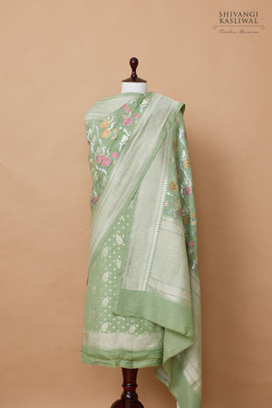 Handwoven suit piece in moonga silk with woven buti in the kurta accompanied with a multi mina arra jaaldupatta.