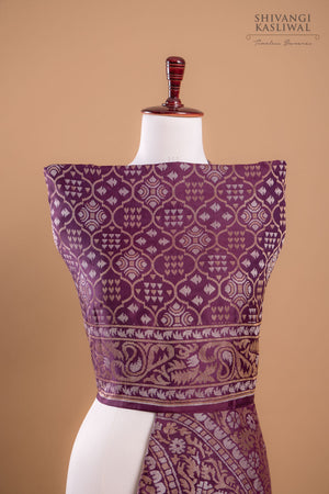 A sumptuous wine Banarasi ektara silk dupatta, artfully woven with a captivating Jamdani jaal pattern that exudes classic sophistication. The rich, deep wine hue is beautifully enhanced by the lustrous sona rupa zari, which adds a radiant sheen to the intricate design. Every delicate detail is a testament to the mastery of Banarasi artisans, reflecting both heritage and luxury. This opulent dupatta is the epitome of refined elegance, perfect for adding grandeur and timeless charm to any distinguished occasion.